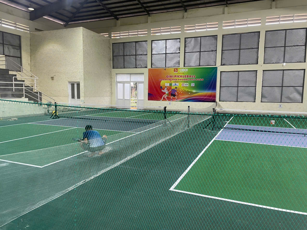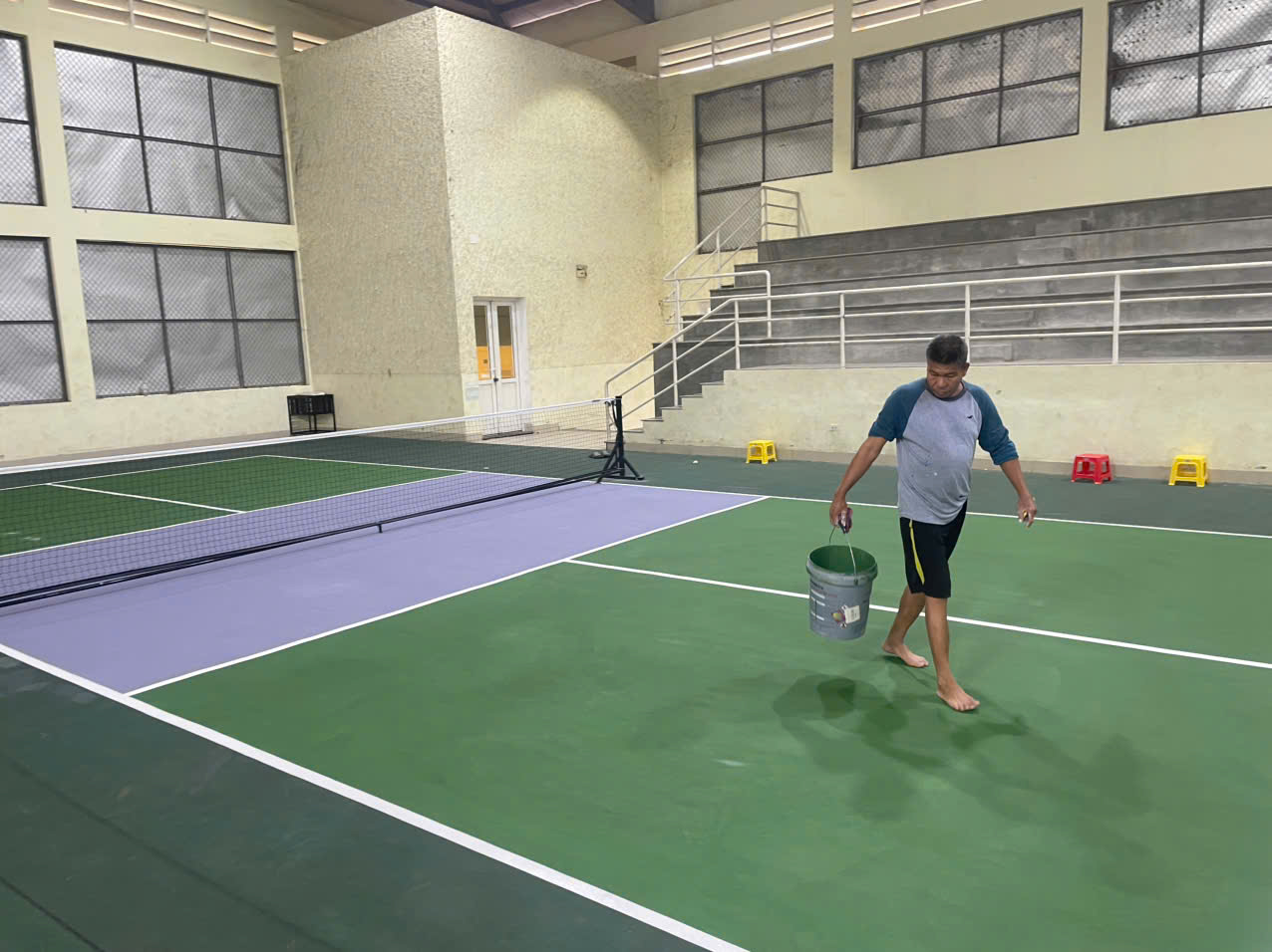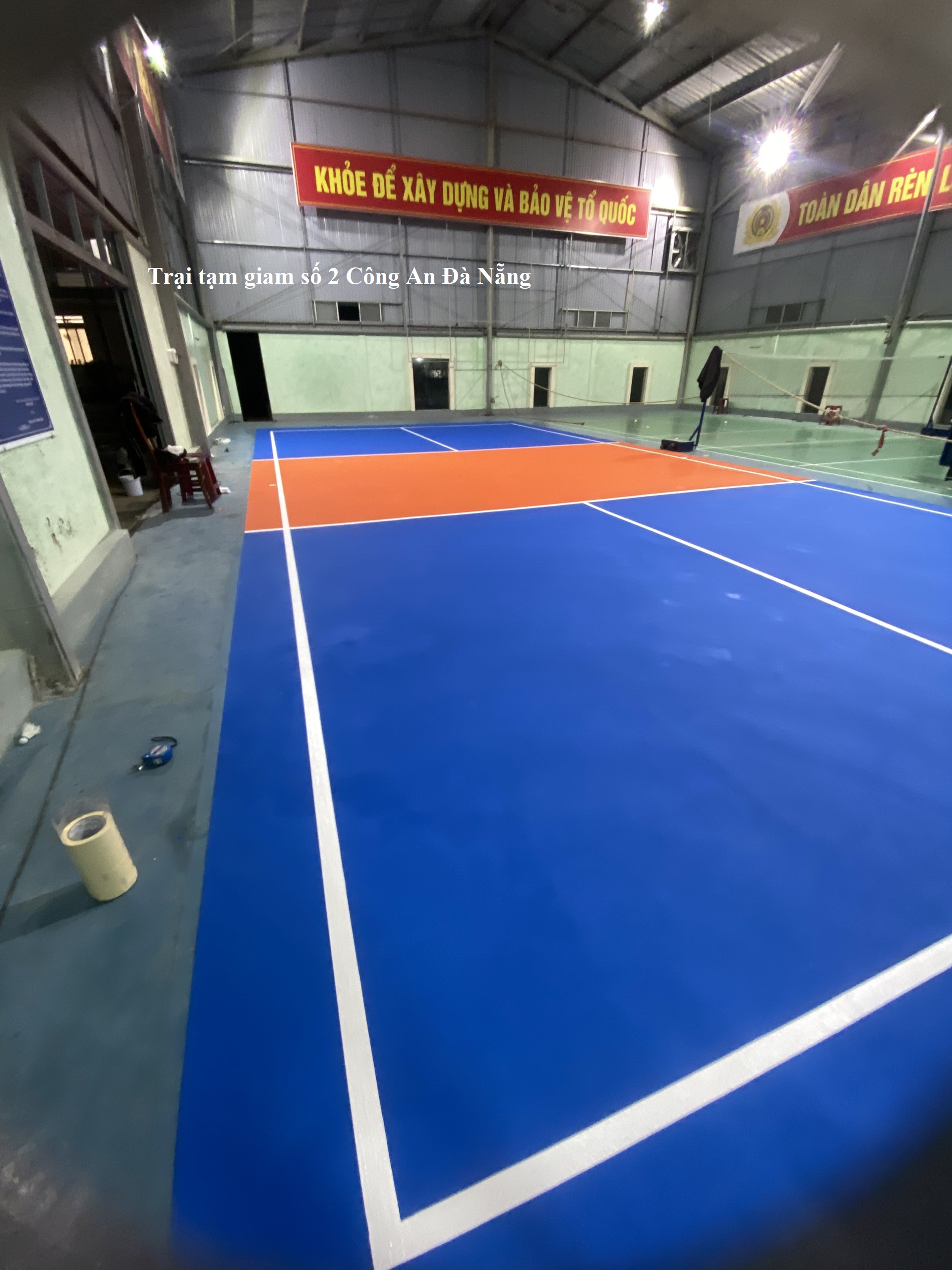 Sân sau khi bàn giao đưa vào xử đụng, được đội ngủ lãnh đạo và cán bộ, chiến sỹ cũng như người dân địa phương thi, tập luyện thể thao. thi dau da nang, sàn vinyl , san vinyl, sàn vinyl thể thao, sàn nhựa thể thao, sàn pvc, mặt sân thể thao, mat san the thao