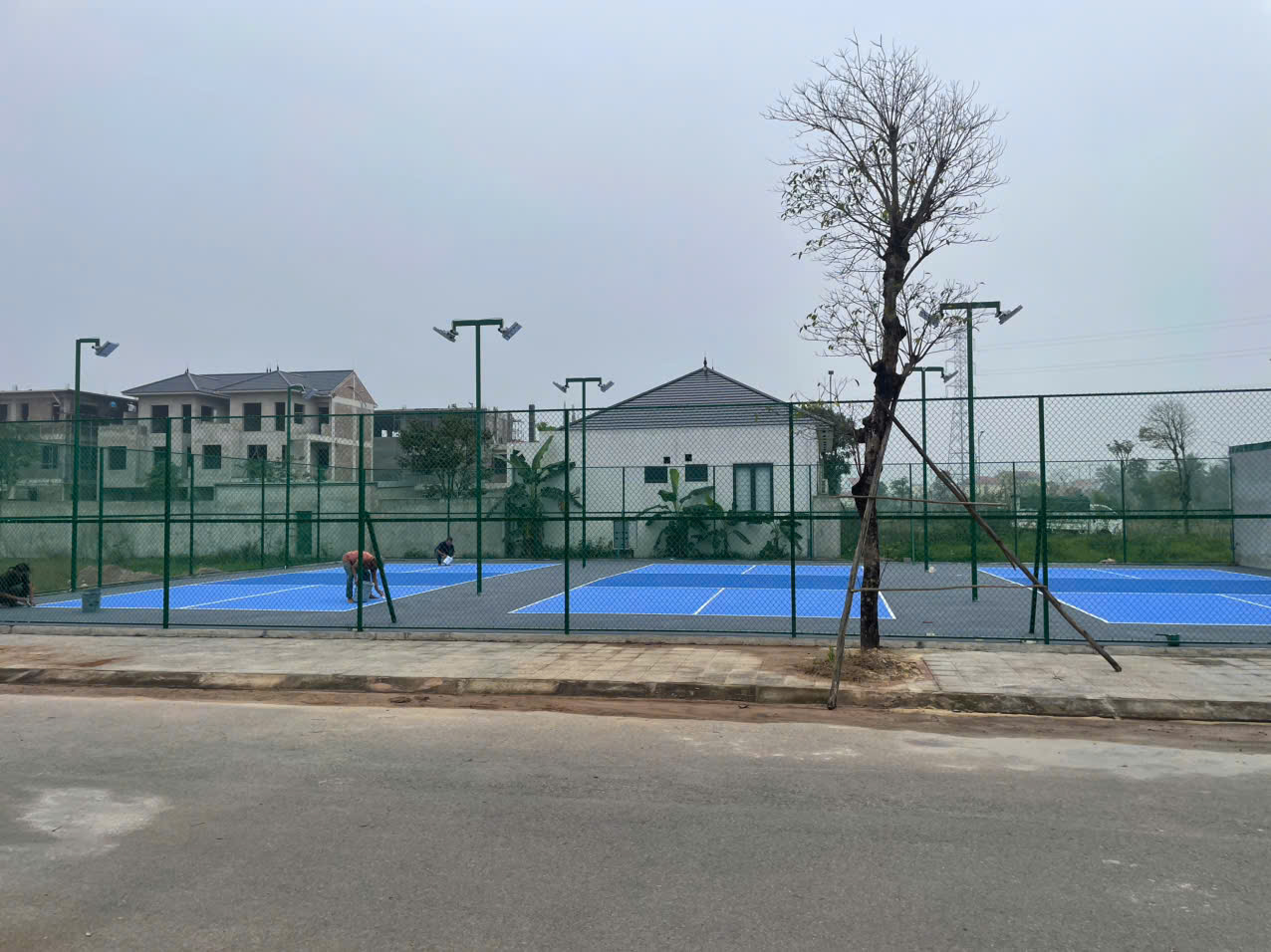 Sân sau khi bàn giao đưa vào xử đụng, được đội ngủ lãnh đạo và cán bộ, chiến sỹ cũng như người dân địa phương thi, tập luyện thể thao. thi dau da nang, sàn vinyl , san vinyl, sàn vinyl thể thao, sàn nhựa thể thao, sàn pvc, mặt sân thể thao, mat san the thao